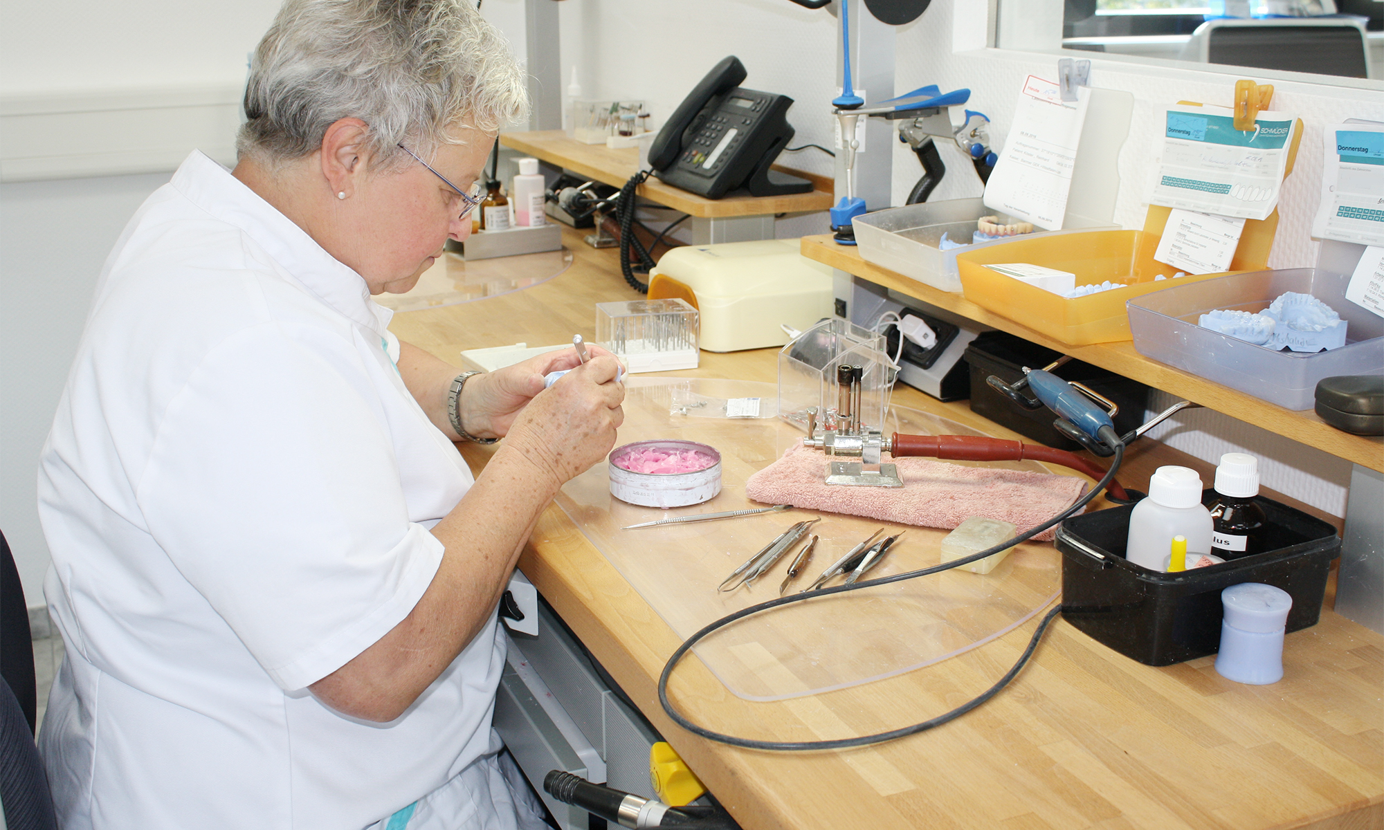 im Haus (z.B. NEM, Zirkonoxide, Kunststoffe, Wachs, Schienen etc.)
